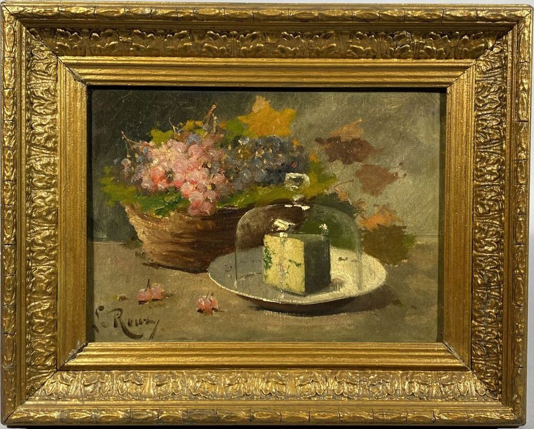 / Constantin Le Roux (1850-1909), Nature morte au fromage et raisin