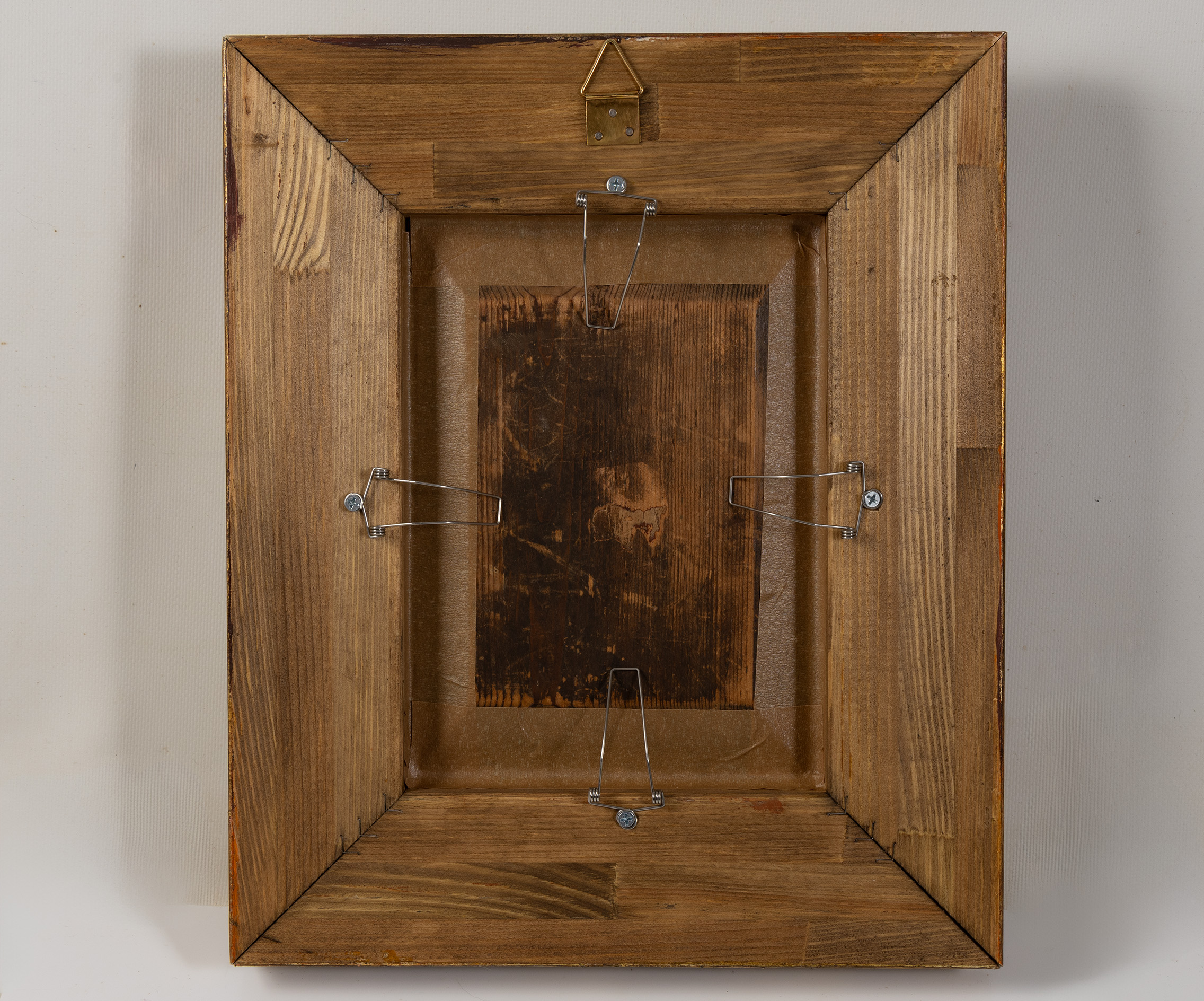 The painting and frame are in excellent vintage condition. The panel shows a rich, authentic patina, some craquelure and very tiny paint losses only. The hand made Italian frame is recent with a deep, lustrous gold finish.