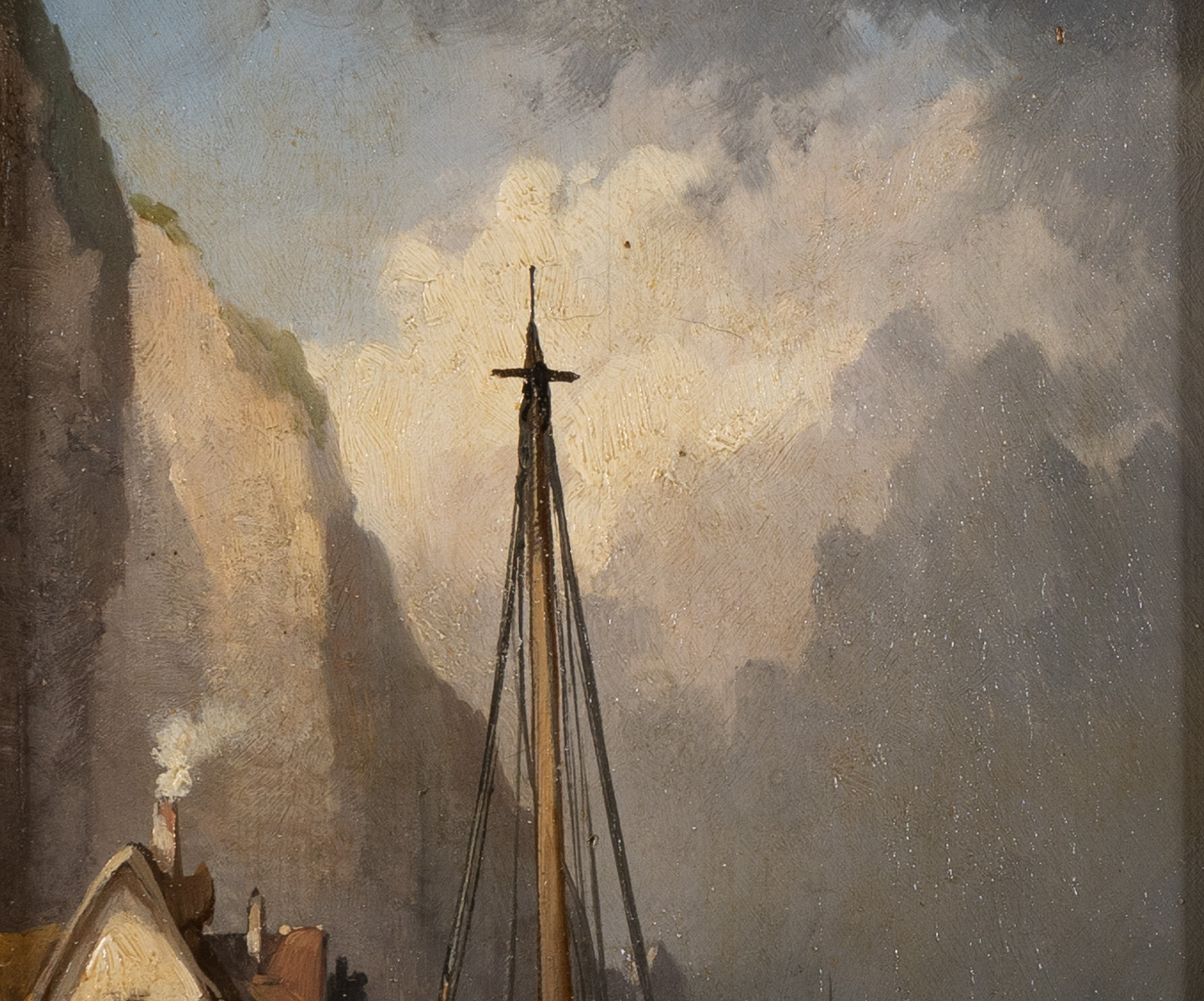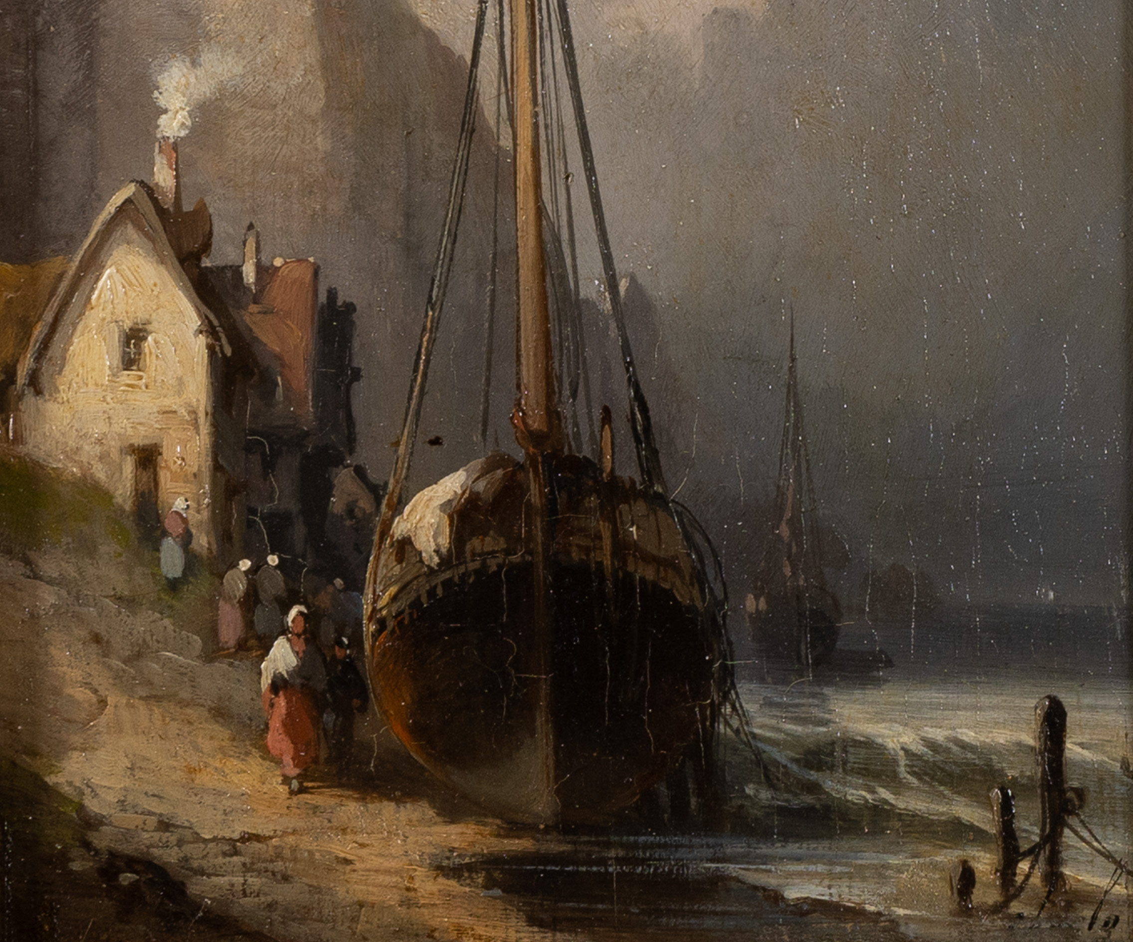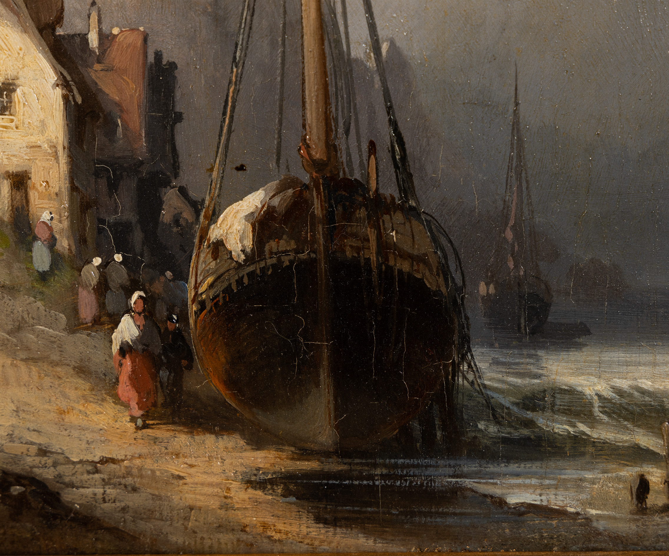 His work was so evocative that it earned him the title of Official Painter to the Ministry of the Marine. He didn’t just paint boats; he painted the atmosphere—the damp mist of the Atlantic, the smoke from seaside chimneys, and the tireless labor of the fishing communities. This particular panel reflects that exact “Romantic Realism” that made Noël a favourite of the Parisian salons and the elite collectors of the Second Empire.