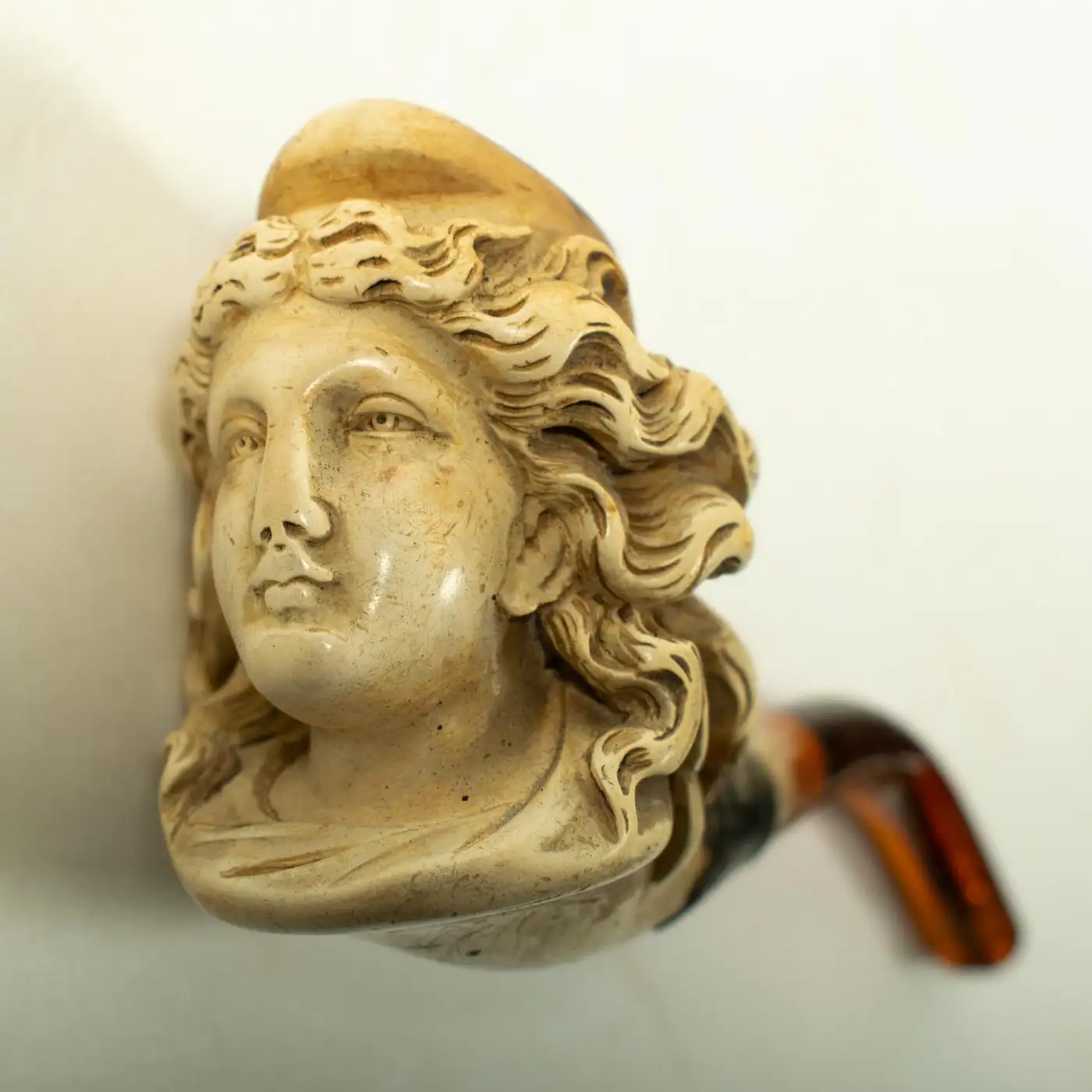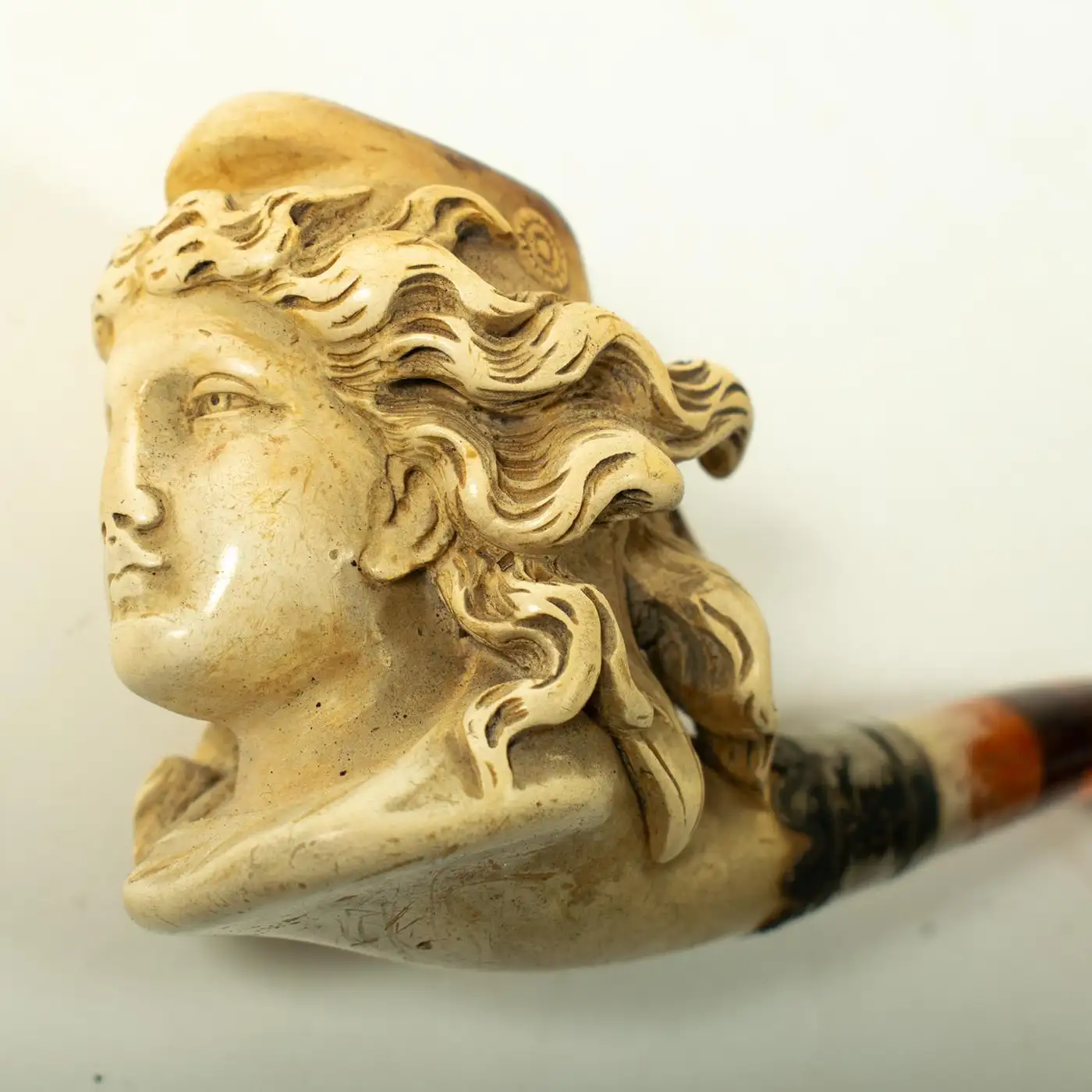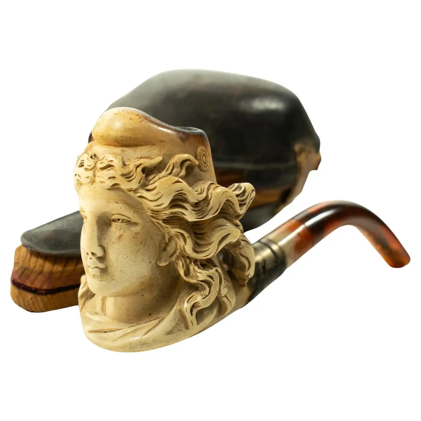 The pipe itself, although showing signs of use, is in good condition, and the set as a whole offers a pleasing look of age and character. With its storied past, this pipe is a wonderful addition for collectors of 19th-century French pipes or those seeking a unique, historically rich item.