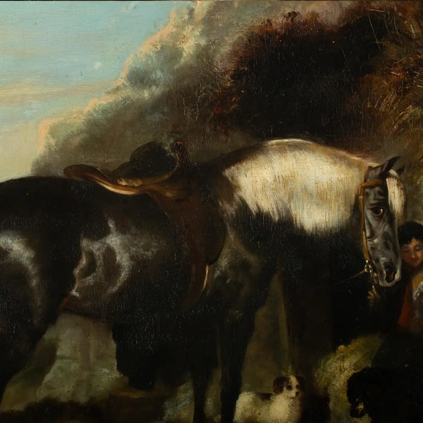 John Frederick II HERRING (British 1815-1907) – “Young boy with a pony and his dogs”.