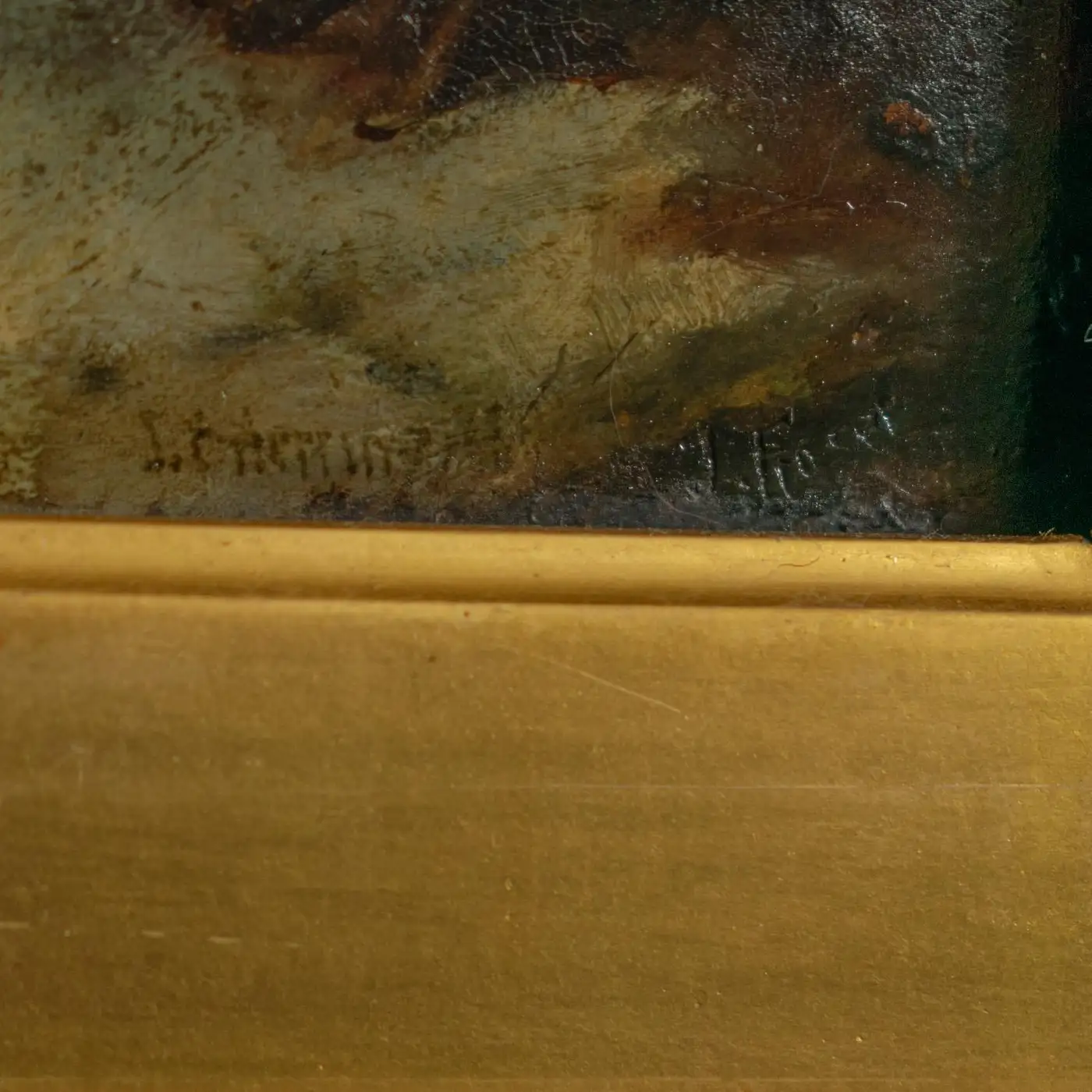 Oil on panel signed lower right, partially legible date “1885” (?)