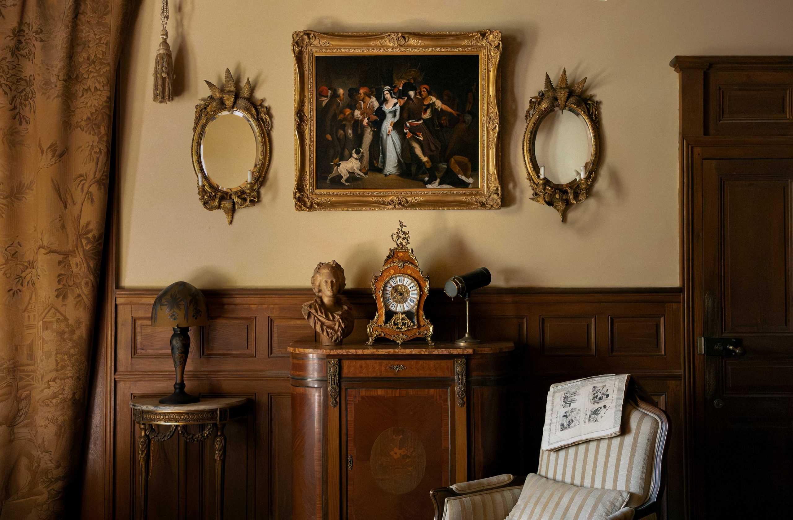 Original, Not a Copy Unlike the numerous 19th-century academic copies of this subject by students and lesser-known artists, this is an original signed work by Henri Scheffer himself. The quality of execution, narrative depth, and painterly technique all confirm its authorship — further supported by a visible artist’s signature and preserved historical context and provenance. Provenance Albert Warnant, 19th-century collector (inscribed on stretcher: “Appartenant à Albert Warnant”) Likely exhibited in a 19th-century salon or institutional setting (accompanied by a period French exhibition label verso) Severin Wundermann (1938–2008) – Prominent American collector and philanthropist. Personally restored under his supervision and housed at his private estate, Château Montfort, on the Côte d’Azur. Sold posthumously as part of his estate by Bonhams, London (Knightsbridge):“Château Montfort – The Property of Severin Wundermann,” June 2010. Condition and Presentation In excellent condition, professionally cleaned and conserved. There have been some old restorations particularly in the area of the dog which show under UV light inspection. The important exhibition labels and notes on the reverse of the canvas have been protected using plexiglass. which also offers additional support to the canvas and stretcher. Presented in a museum-quality 19th-century frame, re-gilded in 22kt gold leaf by L’Atelier Soardi, master framers and gilders based in Nice, France. Gilding done with the traditional “à l’eau” (water gilding) method, as certified by Soardi’s atelier label affixed to the reverse About the Collector: Severin Wundermann Severin Wundermann was a Belgian-born American entrepreneur and legendary collector, known for assembling the world’s largest private collection of works by Jean Cocteau and for his philanthropic contributions to art institutions in France and the U.S. His Château Montfort estate in the Côte d’Azur housed a remarkable private collection that reflected his appreciation for moral symbolism, literary narratives, and historical gravitas — qualities deeply embodied in this painting. Why This Work Matters A rare original painting by Henri Scheffer, not a reproduction A symbolic and historically resonant subject, interpreted with Romantic intensity Documented provenance including one of the 20th century’s most prominent private collectors Closely related to the canonical version in the Musée de Grenoble, which was acquired by the French state after being exhibited at the 1831 Paris Salon Investment-grade condition and presentation, ready for gallery or institutional display Literature & Documentation Original 19th-century French exhibition label affixed verso Bonhams 2010 auction label. Label from L’Atelier Soardi, Nice (re-gilding) Inscription referring to Albert Warnant provenance. Shipping & Notes : Worldwide insured delivery included.