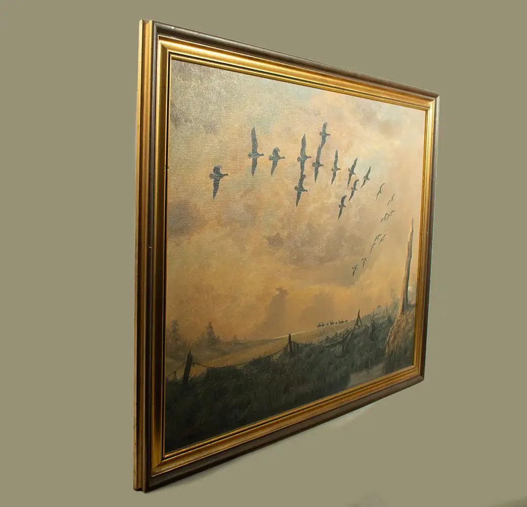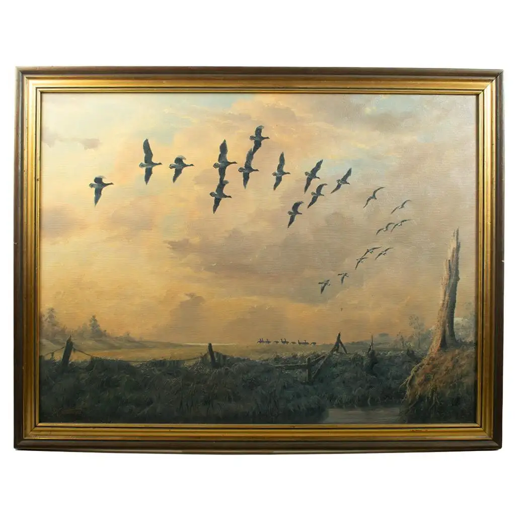 Peter Coulthard (b.1949), Shooting geese in the Fens, signed, oil on canvas.