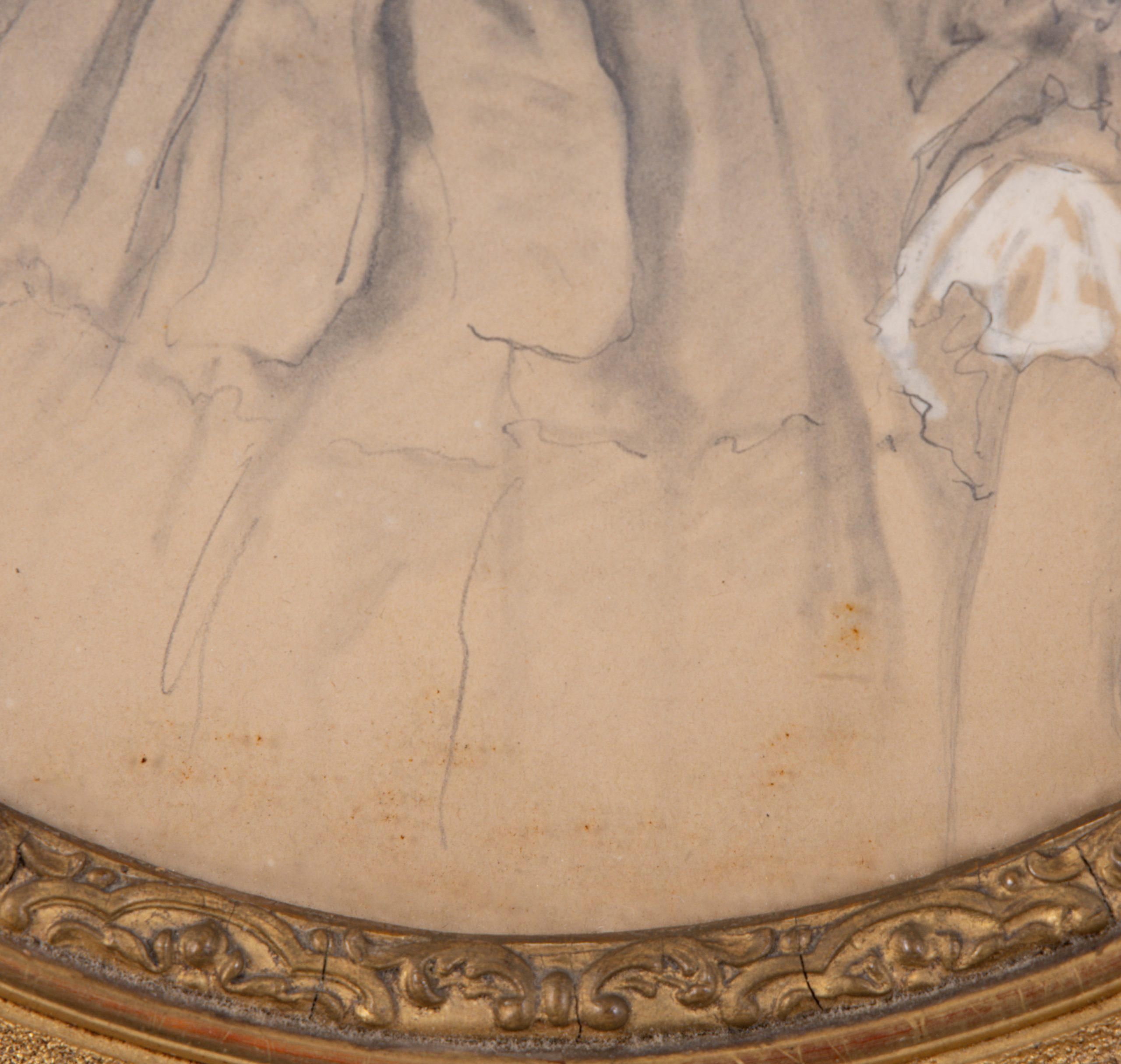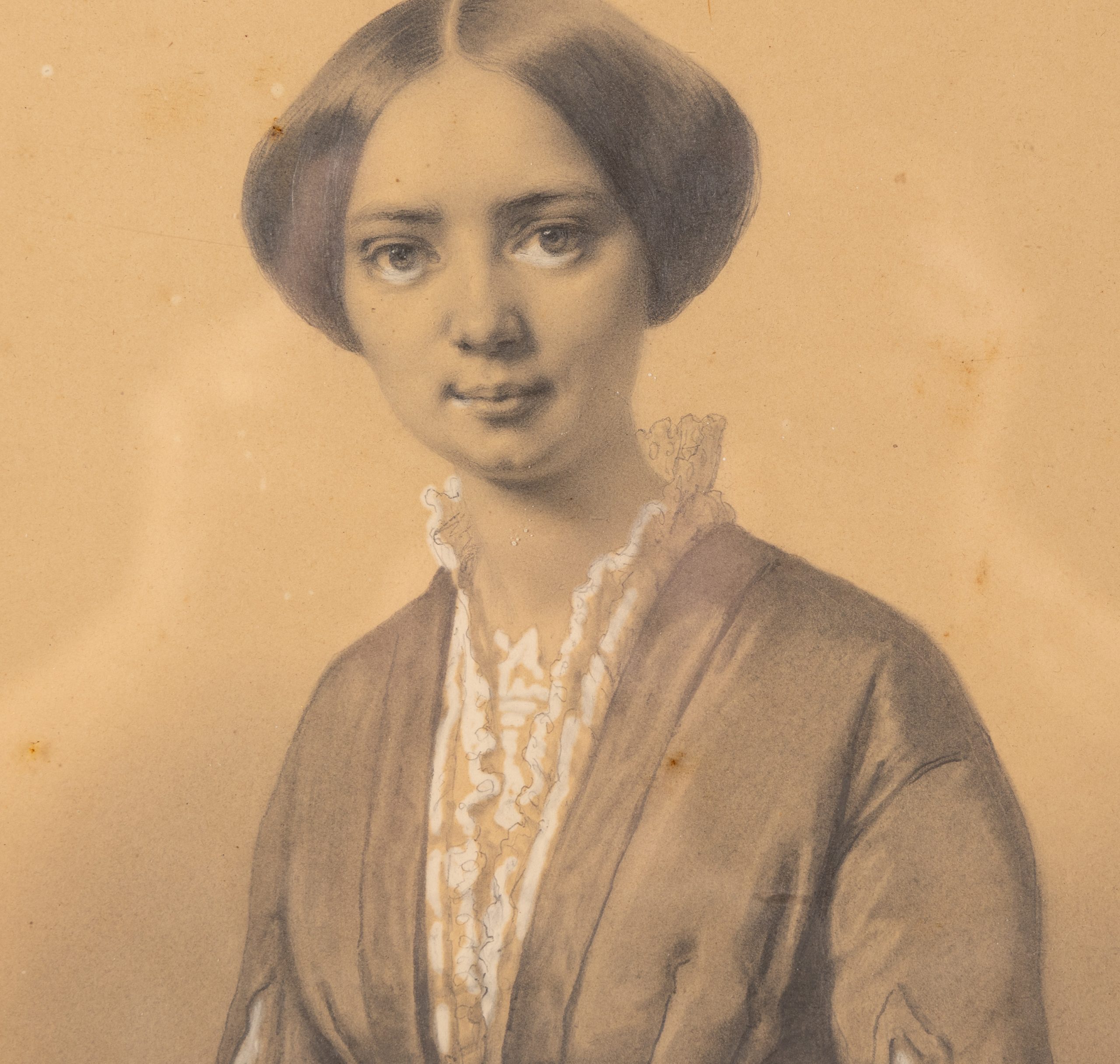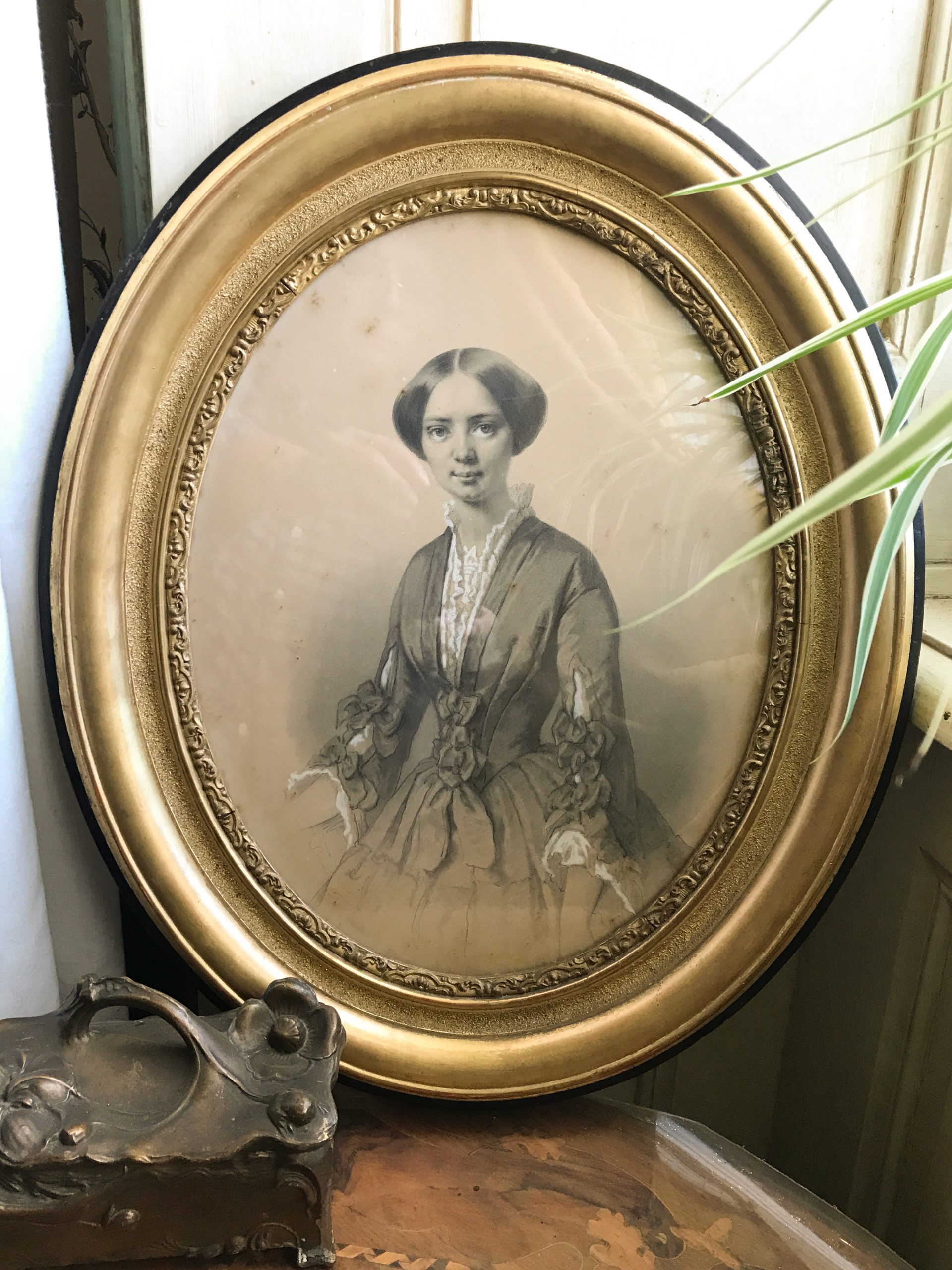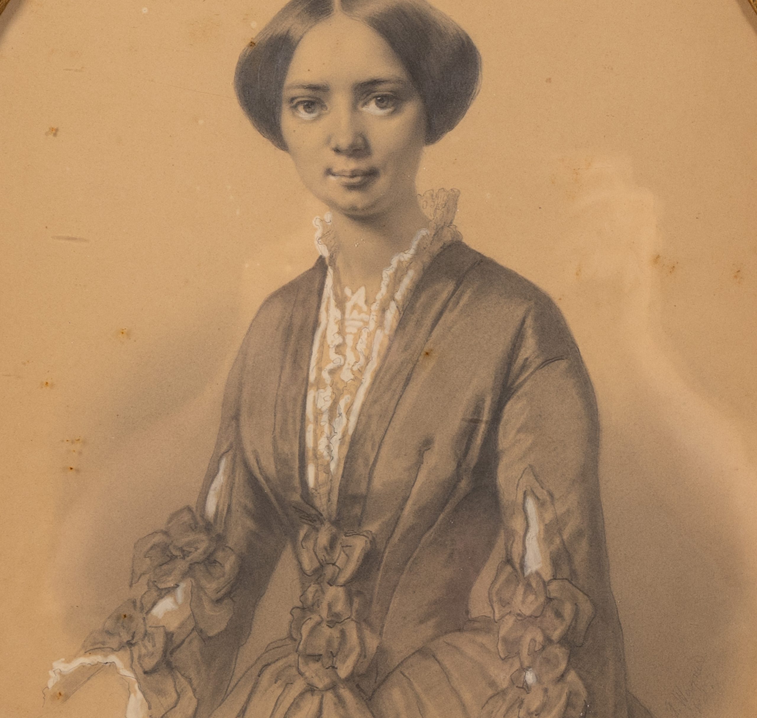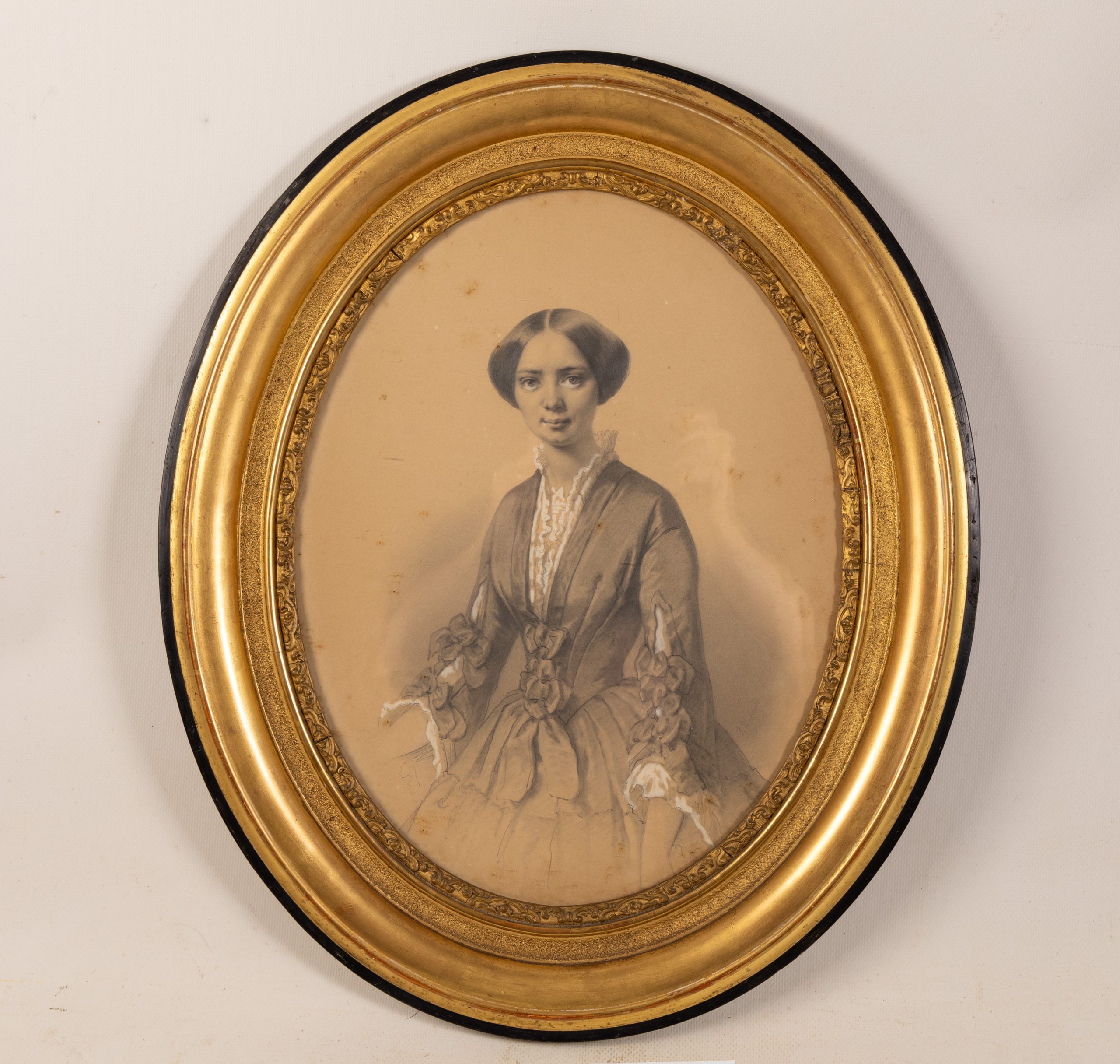 Portrait d’Élégante, 1853 – Original graphite and gouache watercolor painting of an elegant lady