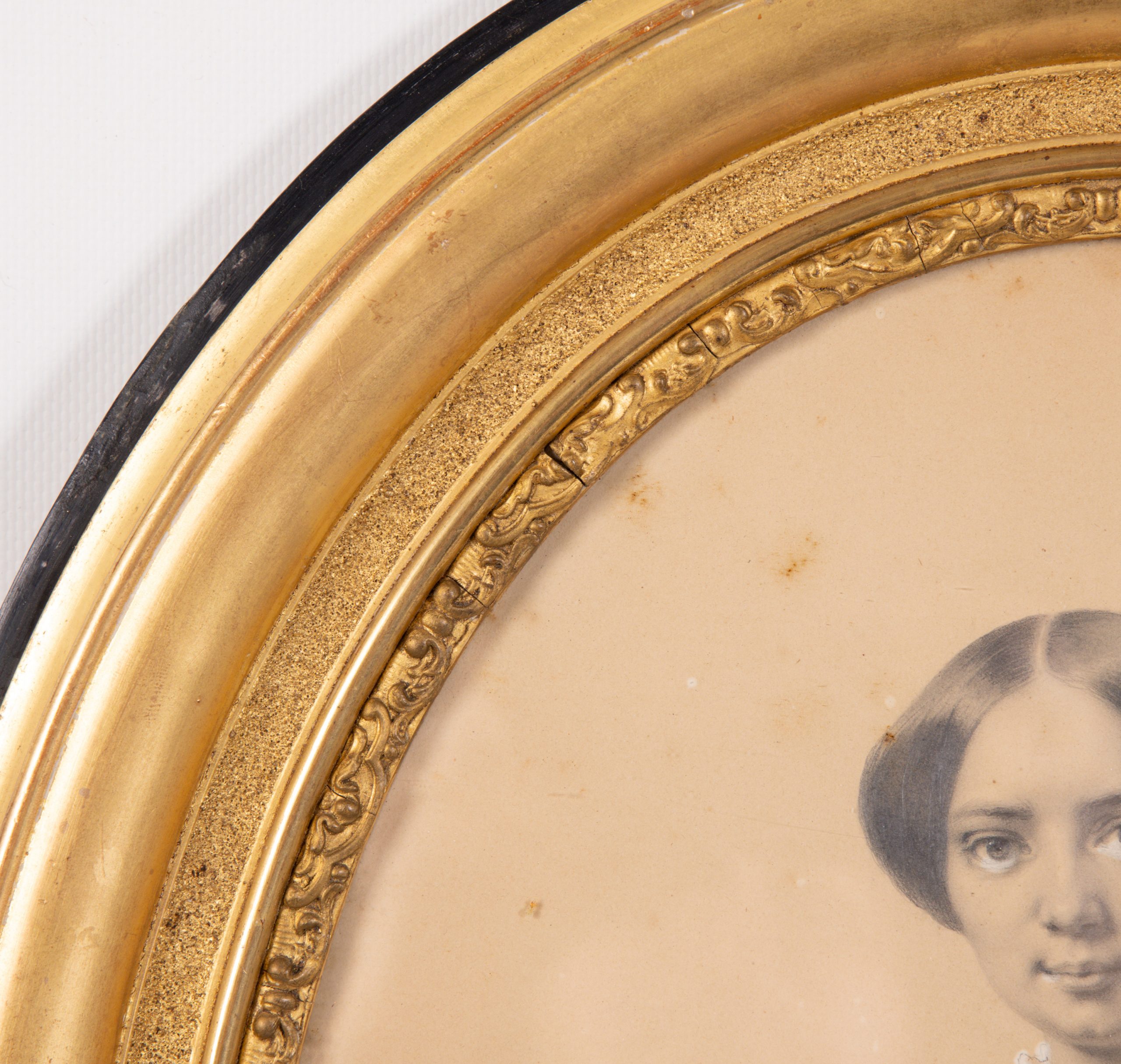 Presented under glass in its original oval giltwood and stucco frame, this portrait captures the timeless delicacy and intimate character typical of Wagner’s work.