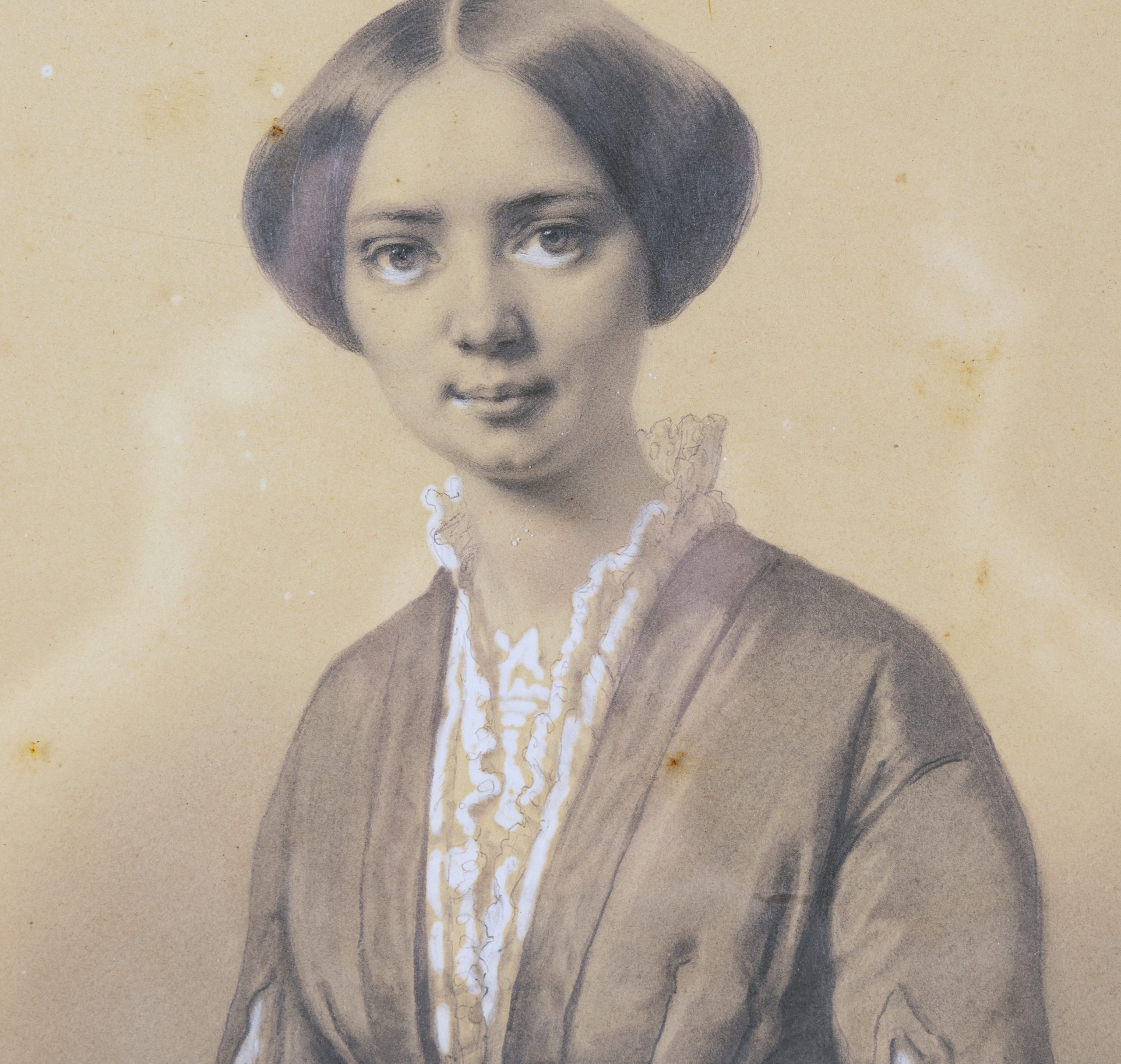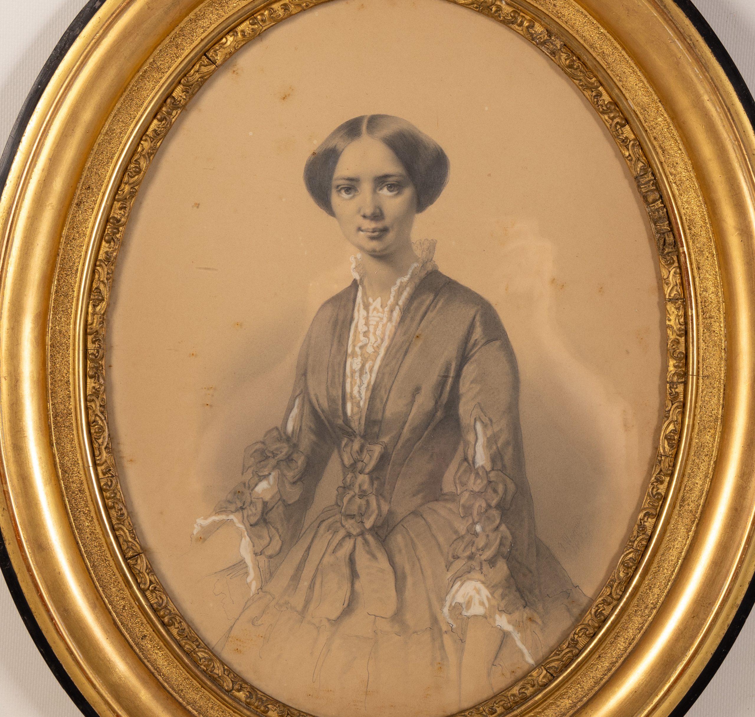 A refined and romantic portrait, beautifully representing the art of mid-19th-century European portraiture.