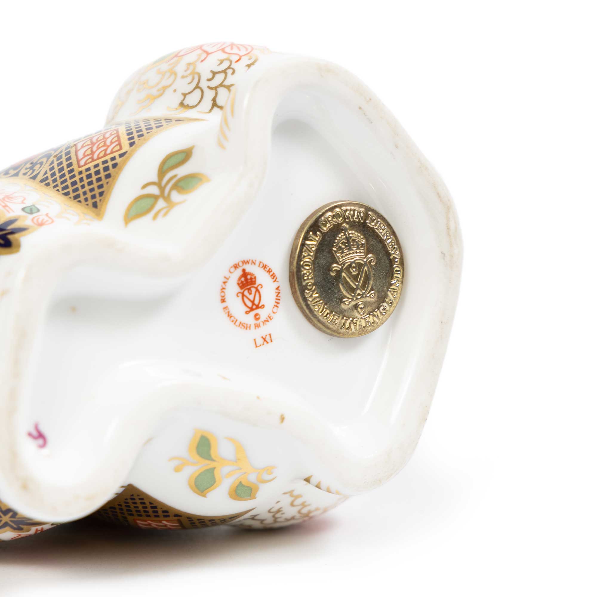 This exquisite Royal Crown Derby polar bear paperweight is crafted in fine bone china and decorated in the iconic Imari pattern. Richly embellished with cobalt blue, red, and gold, this piece showcases the brand’s timeless artistry. A wonderful addition to any collection of porcelain figurines or Royal Crown Derby paperweights.