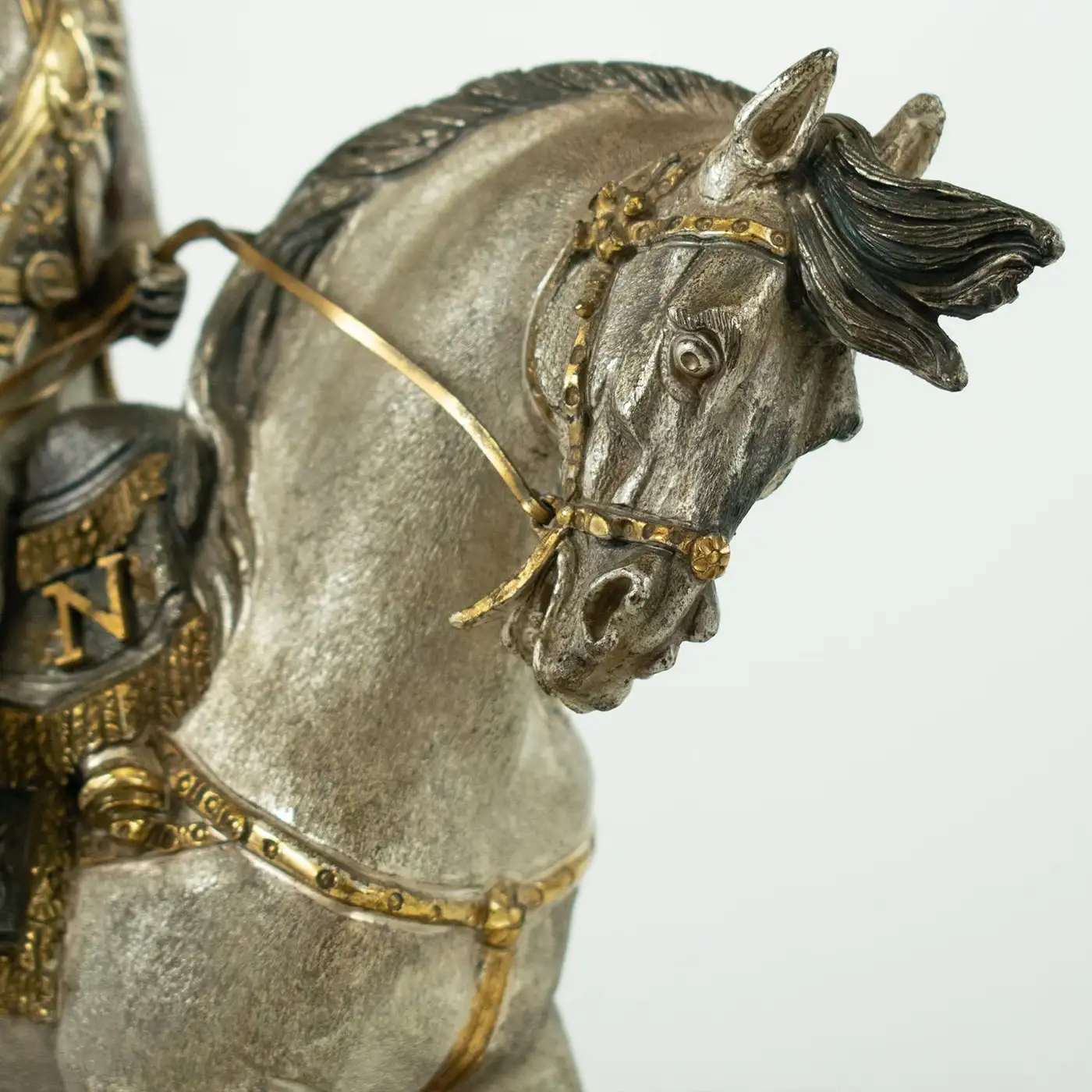 The Imperial Guard was characterised by devotion and absolute loyalty to Napoleon and the senior officers of the latter placed themselves in extreme defence of the Emperor on the day of the Battle of Waterloo. The insignia ‘N’ for Napoleon was primarily used during his reign as Emperor, which lasted from 1804 to 1814 (with a brief return in 1815 during the Hundred Days). This insignia was commonly associated with his imperial regime and was used on various items such as military uniforms, official documents, and personal belongings. This piece is very beautiful and striking. The figure is in very good condition, although missing a stirrup. Mounted on an Onyx base with some small losses. The piece is very heavy so please note that for shipping purposes and in order to avoid damage whilst in transit, the base will be removed from the bronze. This is easily reattached using the original bolts underneath the base.